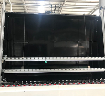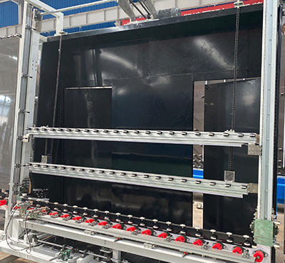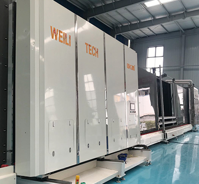 改生產(chǎn)線能實現(xiàn)板內(nèi)板外和片,充氣時采用板內(nèi)合片,板內(nèi)合片可實現(xiàn)大小片、玻璃幕墻的生產(chǎn)。